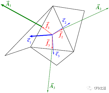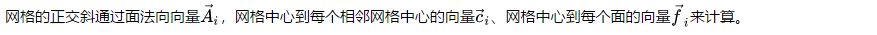 式中,A为面的单位面积向量;rc为连接相邻的网格中心或网格中心的向量。