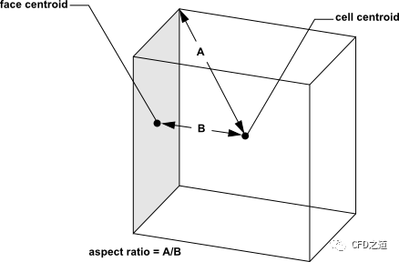 Fluent Aspect Ratio是网格拉伸程度的度量。计算方法为以下任一距离的最大值与最小值之比:单元形心与面形心之间的距离,以及单元形心与节点之间的距离。对于一个单位立方体(如图所示的计算单位立方体的流畅长径比),最大距离为0.866,最小距离为0.5,所以长宽比为1.732。这种类型的定义可以应用于任何类型的网格,包括多面体。