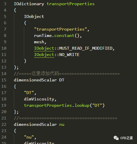 修改 creatFields.H文件,在其中添加热扩散系数。