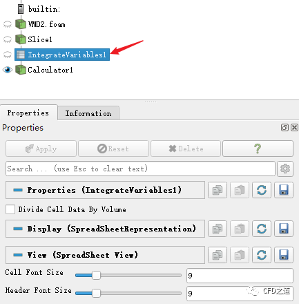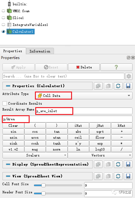 在IntegrateVariables1上创建一个Calculator1,获取面上的平均压力