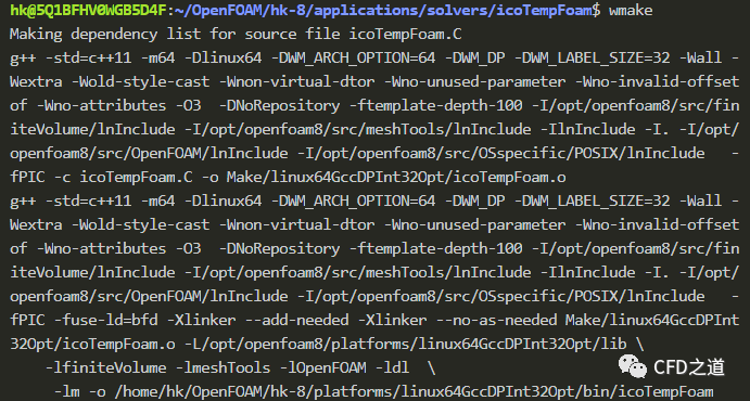 此时可以尝试利用wmake命令进行编译,若能够正常编译,则表示文件准备没有问题。后面为icoTempFoam求解器添加温度求解功能。