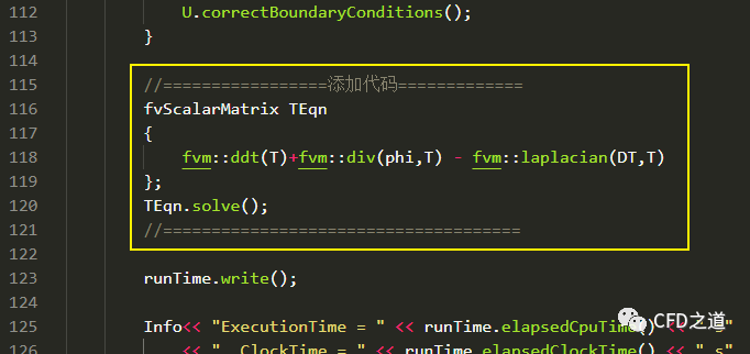 在源文件 icoTempFoam.C中添加温度场控制方程