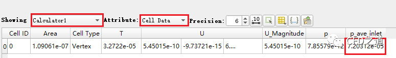 得到入口面上的平均压力,如下图所示,其压力值为7.20312e-5 m2/s2