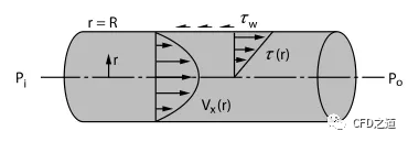 其中给出了充分发展速度表达式及水头损失表达式。分别为: