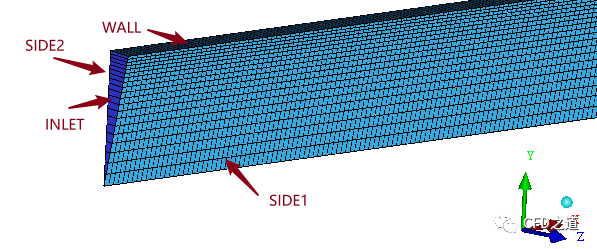 这里采用ICEM CFD中的Extrude Mesh功能对2D网格进行处理,将其转化为三维结构,如下图所示(OUTLET边界在图中没有标识出来)。