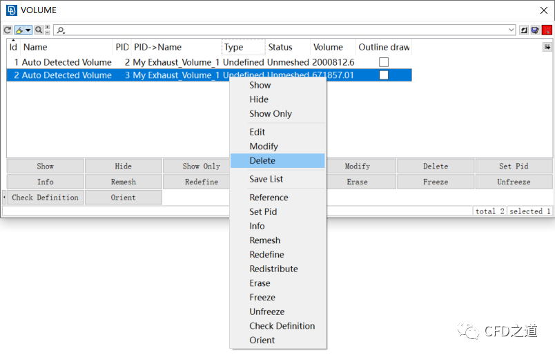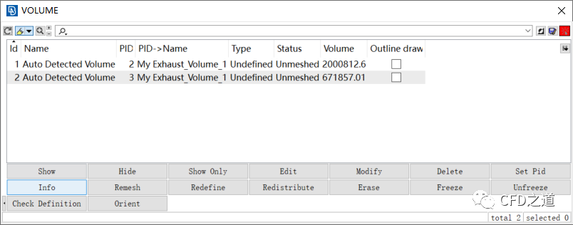 利用命令Volumes → Define → Auto Detect自动探测封闭区域