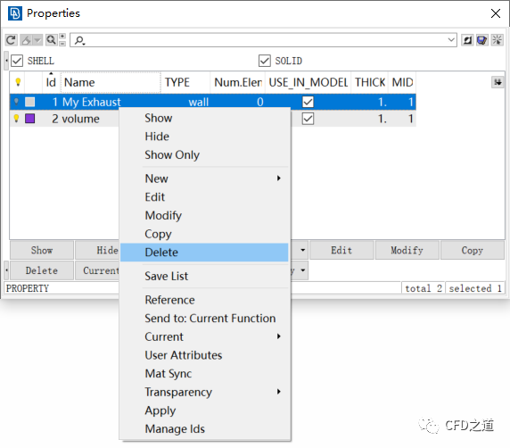 利用命令Face → Set PID将构成内部流体域的几何面放到同一个PID中。