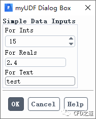 (rpsetvar 'myudf/int (cx-show-integer-entry int)) ; 将GUI中的控件值赋值给变量