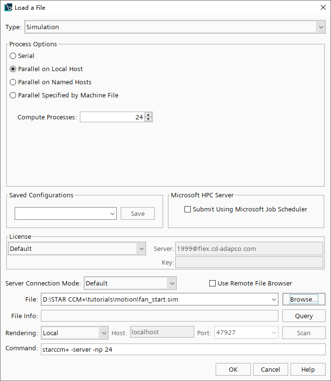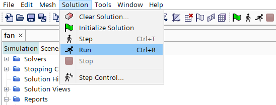 选择菜单File > Load,在打开的对话框中加载仿真文件fan_start.sim