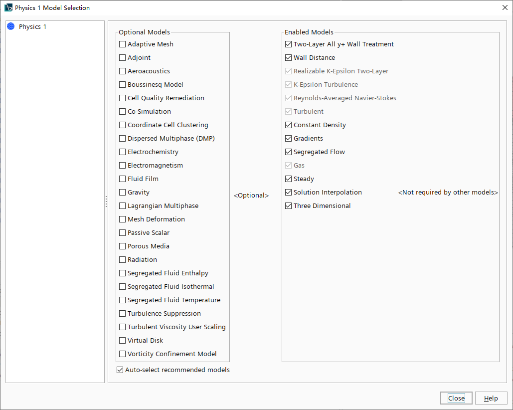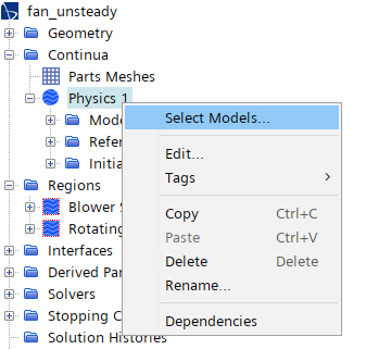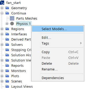 右键选择模型树节点Physics 1,点击弹出菜单项Select Models… 打开模型选择对话框