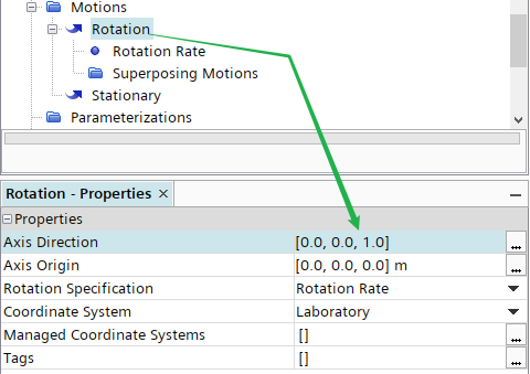选择模型树节点Regions > Rotating > Physics Values > Motion Specification,指定Motion为Rotation