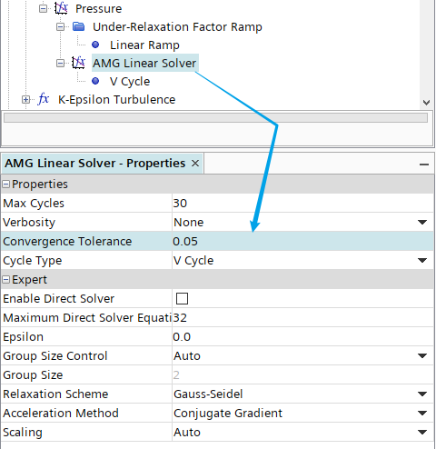 选中节点AMG Linear Solver,设置Convergence Tolerance为0.05