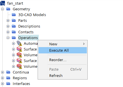 右键选择模型树节点Operations,点击弹出菜单项Execute All生成计算网格