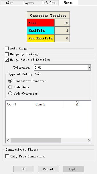 为了拉伸面网格生成体网格,必须合并面网格节点,防止有缝隙的存在。