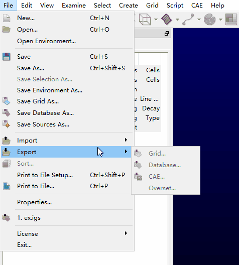 选择菜单File → Export → CAE