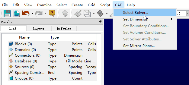 在启动Pointwise后的第一件事就是选择目标求解器。因为不同的目标求解器可能对于网格有不同的要求。
