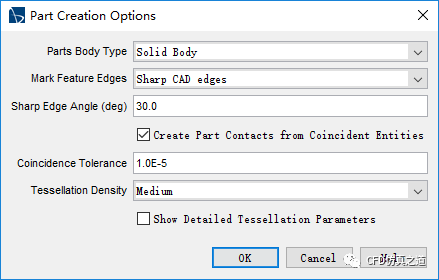 弹出的选项对话框中采用默认参数,点击OK按钮加载几何