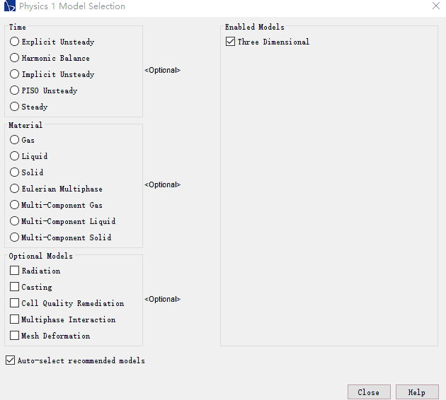 选择以下物理模型:Steady、Liquid、Segregated Flow、Constant Density、Turbulent、K-Epsilon Turbulence,如下图所示操作。