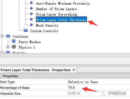 选中节点Prism Layer Total Thickness,设置属性Percentage of Base为10