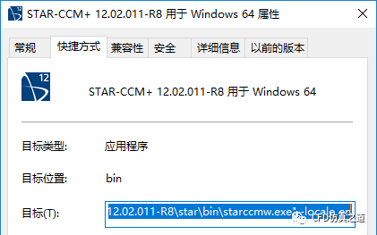 新版本的CCM+启动后默认为中文界面,若要修改为英文界面,可在快捷方式属性中添加-locale en,如下图所示