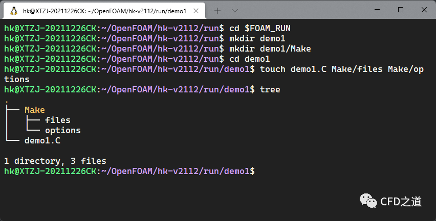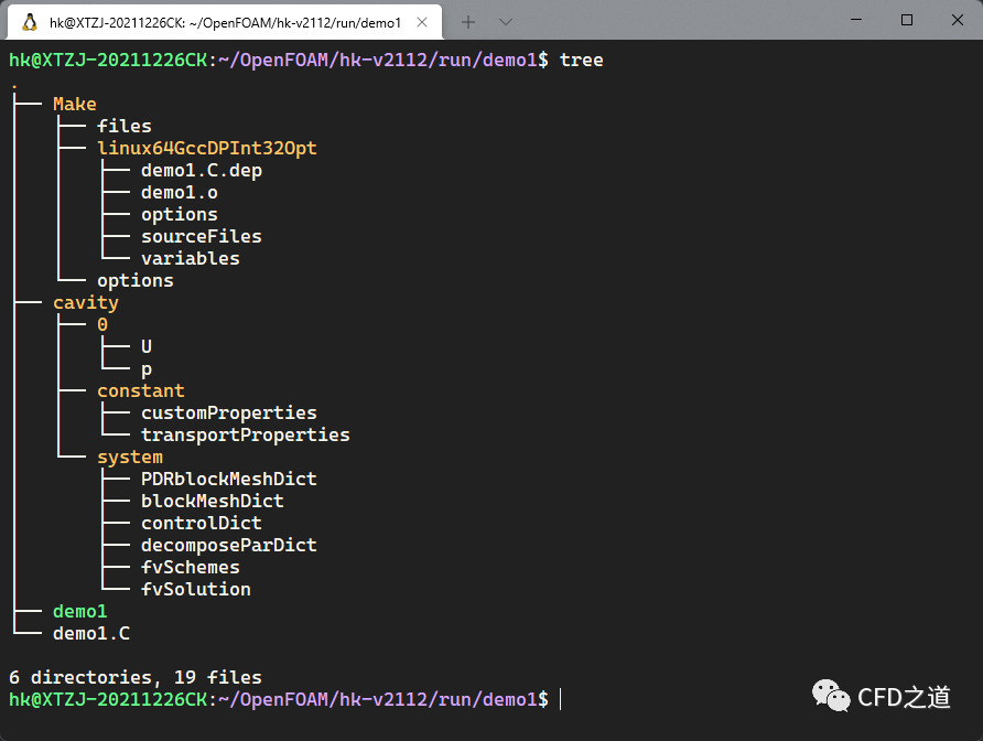 利用下面的命令从tutorials中拷贝一个案例文件到当前路径(如拷贝cavity)。