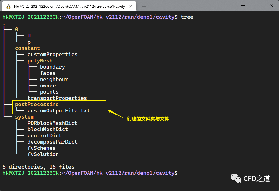 在cavity/constant文件夹中添加文件customProperties文件,并复制上面的内容。此时文件组织形式如下图所示。