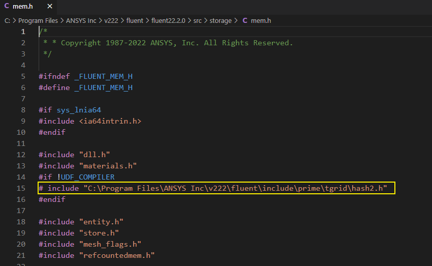 如下图所示进行修改。注意Fluent路径下有很多个mem.h,不要改错文件了。