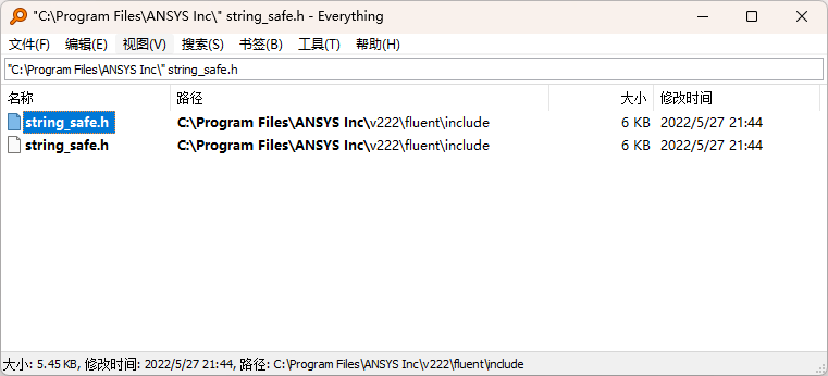 提示的意思是在源文件cx.h中包含的头文件string_safe.h找不到。这个string_safe.h文件是存在的,可以在Fluent的安装路径下搜索到。