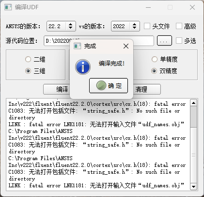 在Fluent中利用Visual Studio编译UDF,出现下面的错误提示。