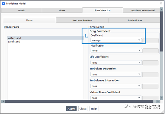 在Phase Interaction里将water sand之间的曳力模型设为wen-yu