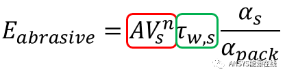 公式中红色框内是颗粒撞击时造成的壁面损伤,绿色框内是沿着壁面滑移造成的损伤。