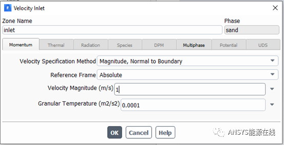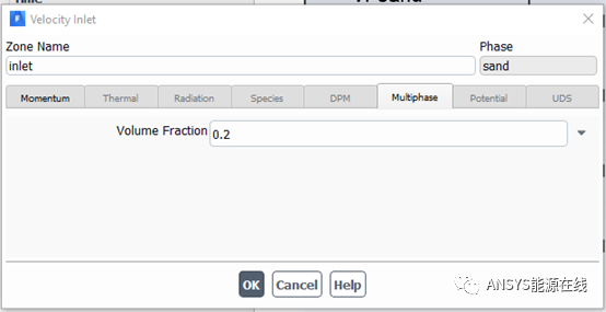 将入口的sand速度也设置为1m/s,体积分数设置为0.2