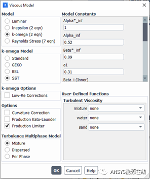 点开Shear Stress旁边的Edit,在弹出的新的窗口里就可以设置模型参数,默认的参数为油沙混合物的参数,本案例就采用默认值。