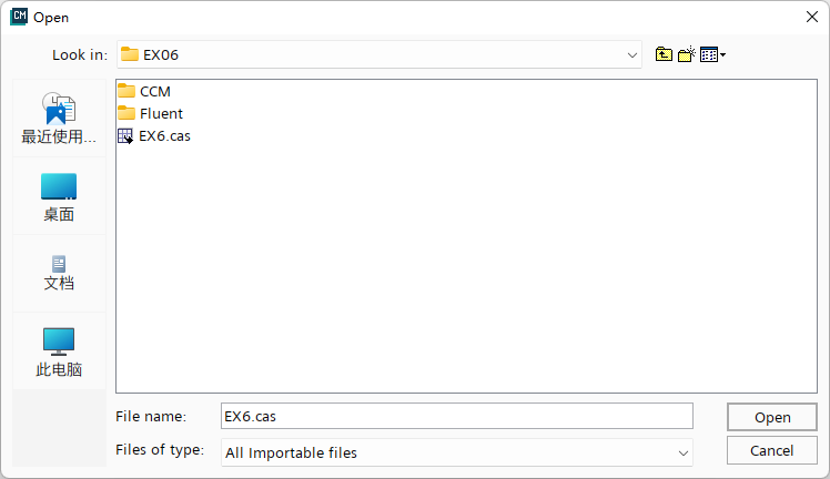 点击菜单File → Import → Import Volume Mesh…,在弹出对话框中选择网格文件VM06.msh导入网格