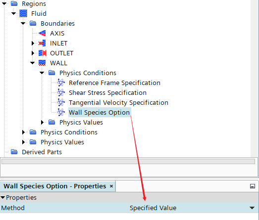 选中模型树节点 Wall Species Option,指定Method为Specified Value