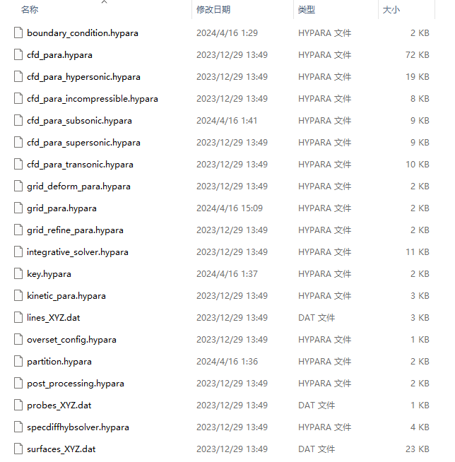 PHengLEI的所有配置文件都放置在bin文件夹中。其中key.hypara文件是主控文件,需要先修改此文件内容。