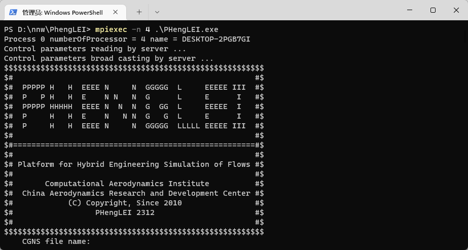 所有文件都准备完毕后,可以使用命令mpiexec -n 4 ./PHengLEI.exe进行计算。