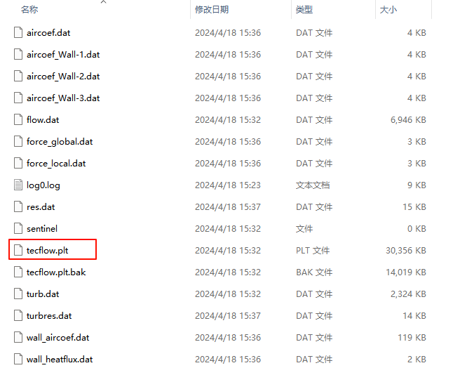 可以使用Tecplot打开tecflow.plt文件进行后处理,也可以利用文本编辑器打开dat文件查看数据。