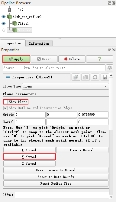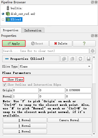 取消激活选项 Show Plane ,点击按钮 Apply 创建切片