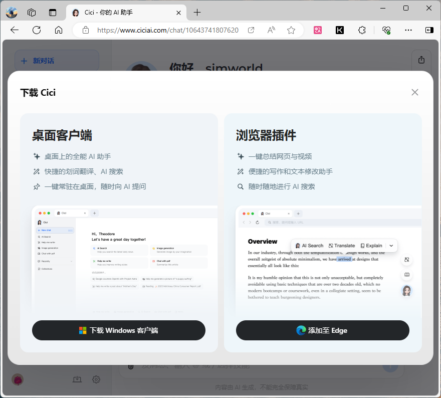 今天的主角其实不是豆包,而是Cici。Cici是国际版豆包。进入Cici官网后,可以点击左下角下载按钮打开下载页面。