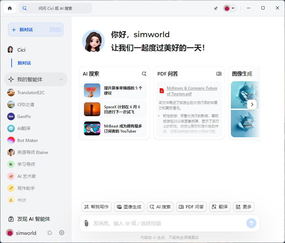 选择安装客户端后,启动后的工作方式和豆包几乎完全相同。