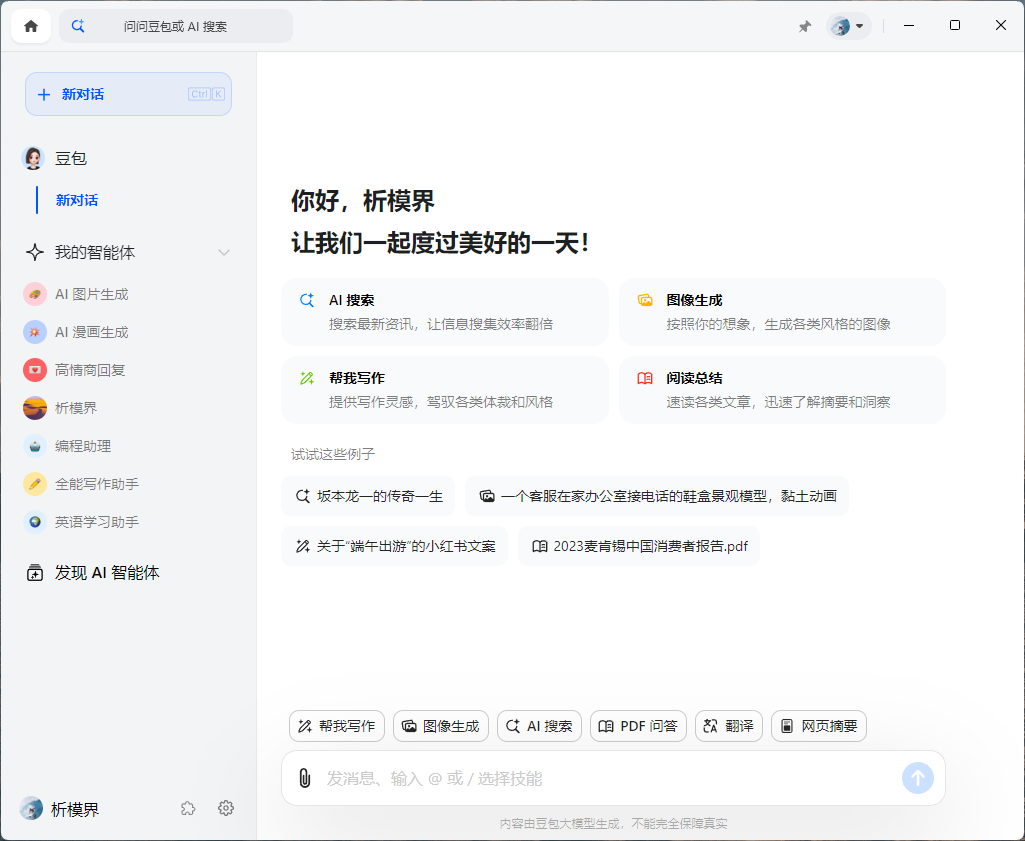 奈何豆包只能使用网页版或手机APP,对于以电脑为主要生产力工具的人来说意义不大。然而今天发现豆包发布了windows客户端。桌面版更有利于在电脑端使用,稍加利用,妥妥的生产力工具。