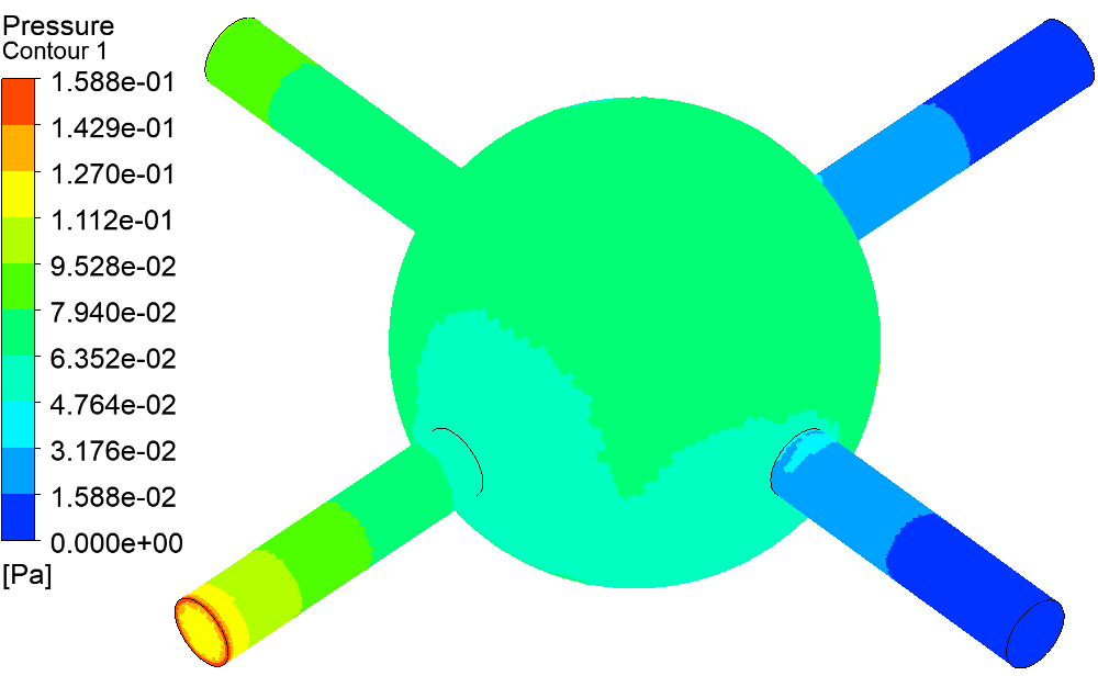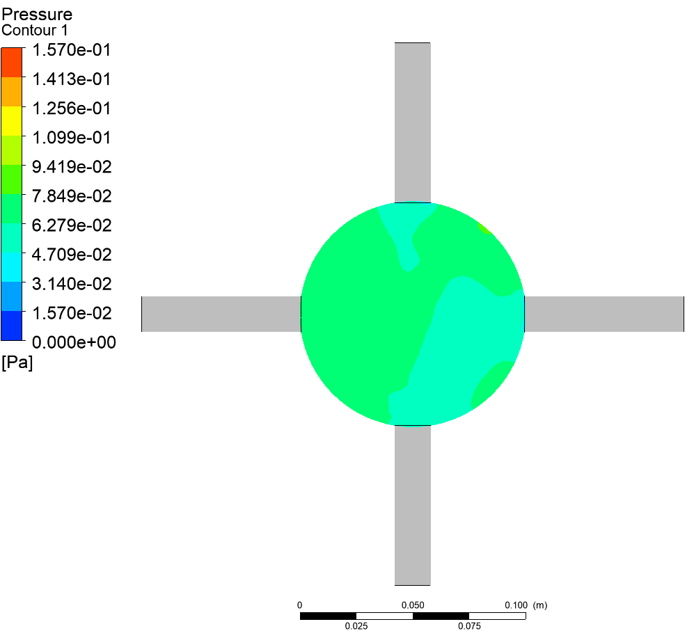 CFD-Post 读取 CDAT 文件后,CFD-Post 创建的截面上压力分布如下图所示,仅“fluid_sphere”区域有数据,在其他区域无数据。