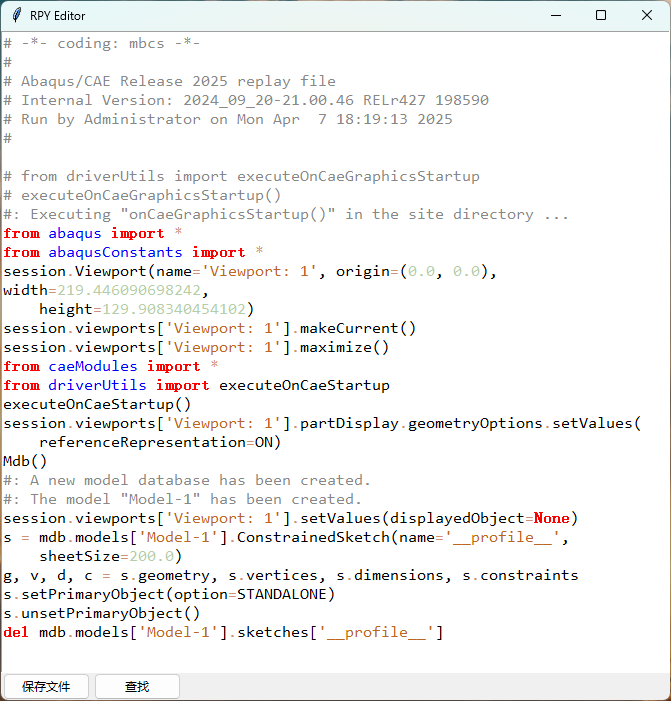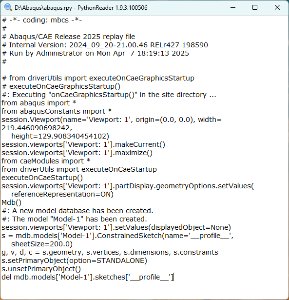 早些年使用abaqus那会儿,录制操作脚本经常需要打开rpy文件进行查看并复制,因为Abaqus经常会录制一些视角操作的代码,这些代码对后续使用没有作用,经常需要删除。在操作中经常是打开两个文本文本操作几下复制几段代码,颇为麻烦。后来在网络上发现了个rpy文件实时查看的工具PythonReader.exe,用起来挺不错,不过这软件很久没有更新了,作者说的要实现代码高亮在当前能找到的版本中并未实现,所以多少有点儿遗憾。