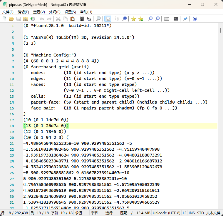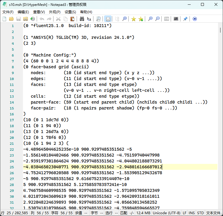 此时解压出来的msh文件可以被文本编辑器打开。如下图所示。