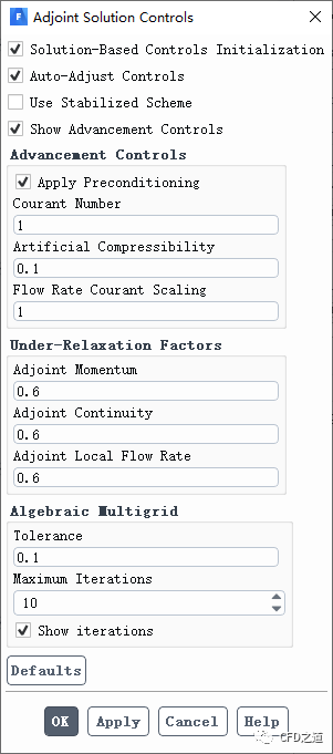 注:在所有的adjoint面板中,若同时存在Apply及OK按钮,通常需要先点击Apply按钮,再点击OK按钮。