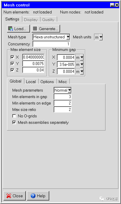 进入Mesh control面板,如下图所示设置网格参数,点击Close按钮关闭对话框