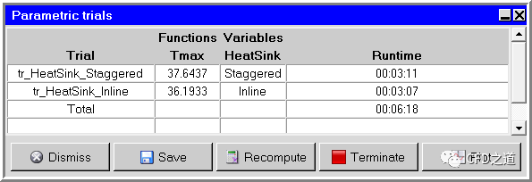 本案例演示利用Icepak中的设计变量复选参数控制方法比较直列式散热器与交错式散热器的性能。直接利用优化设计方案比较不同类型散热器的散热效果,这要比手工创建不同的模型分别计算更加方便。