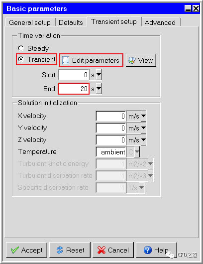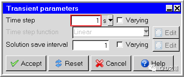 点击按钮Edit parameters,设置Time step为1 s,设置Solution save interval为1,如下图所示