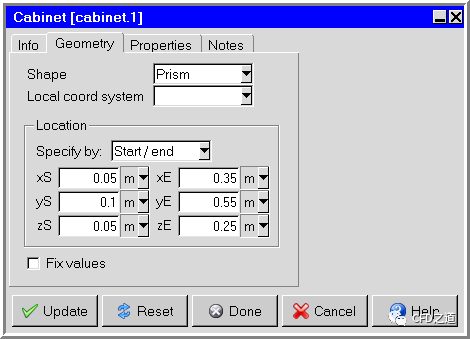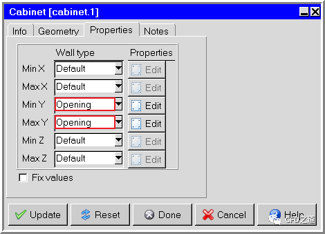 双击模型树节点Cabinet,弹出对话框中指定几何尺寸,如下图所示